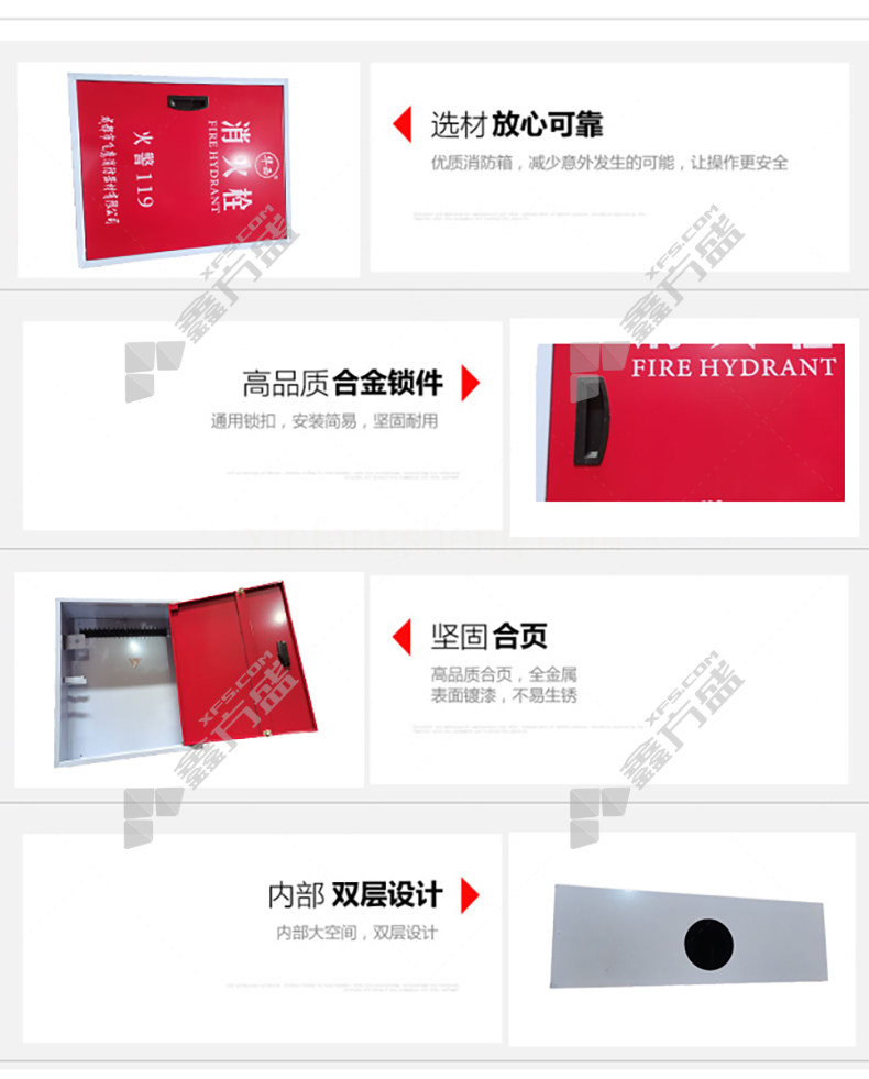 首页 首页 > 消火栓箱 明装右开铁门 800mm*650mm*210mm/1.0mm