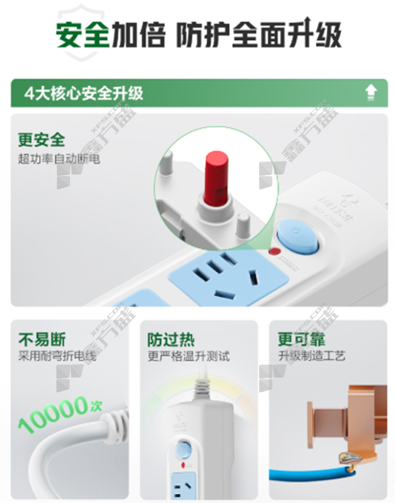 • 公牛 4位五孔 插排 GN-410 10A 总控 5m 白色