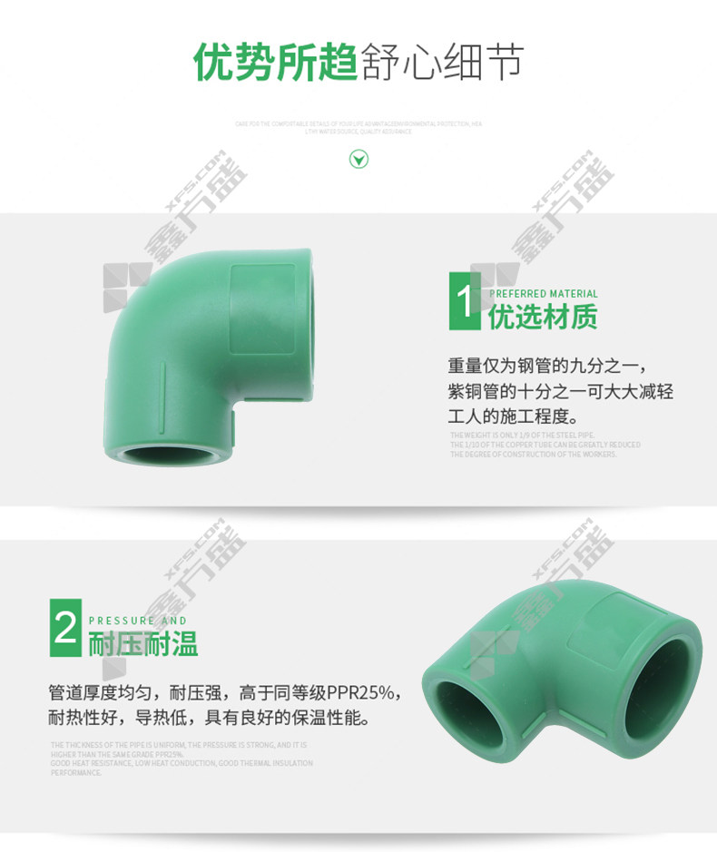 商品名称: 联塑 PPR中水异径弯头 绿色 40*25 绿色