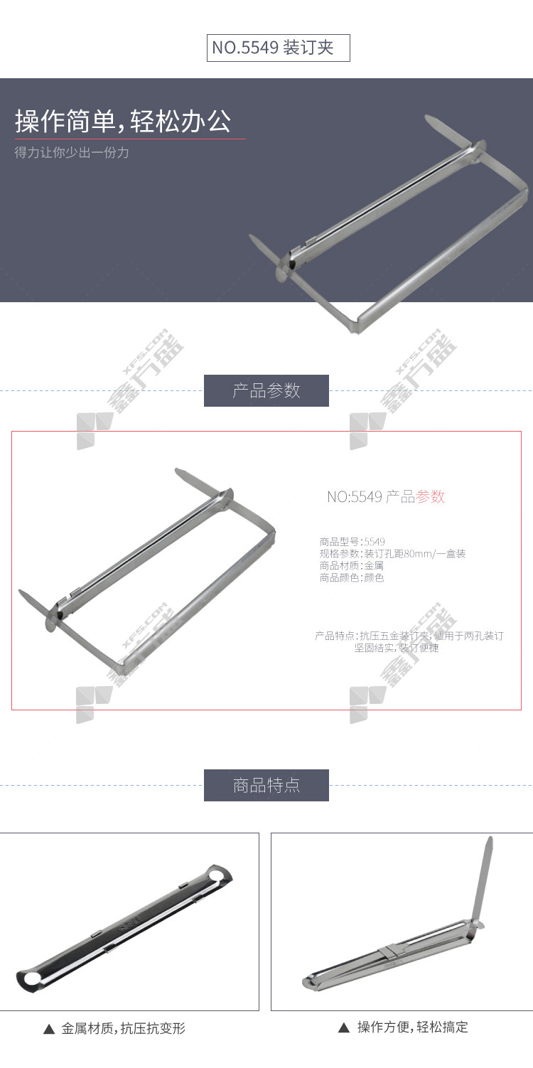 商品名称: 得力 5549 五金装订夹50套/盒 80mm 金属色