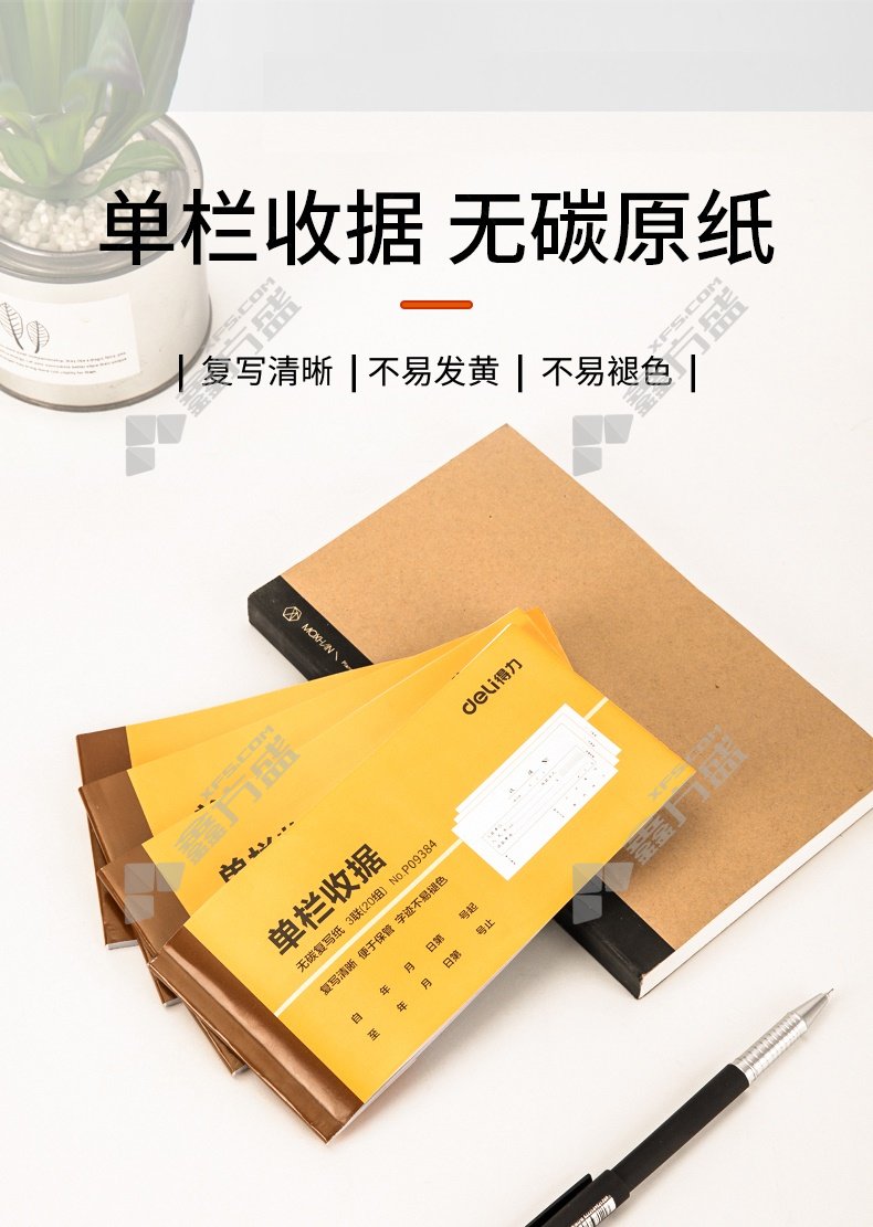 包装清单:得力deli 单栏收据*1本