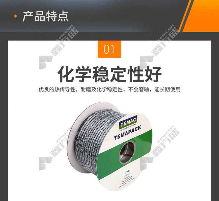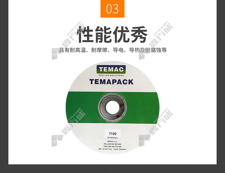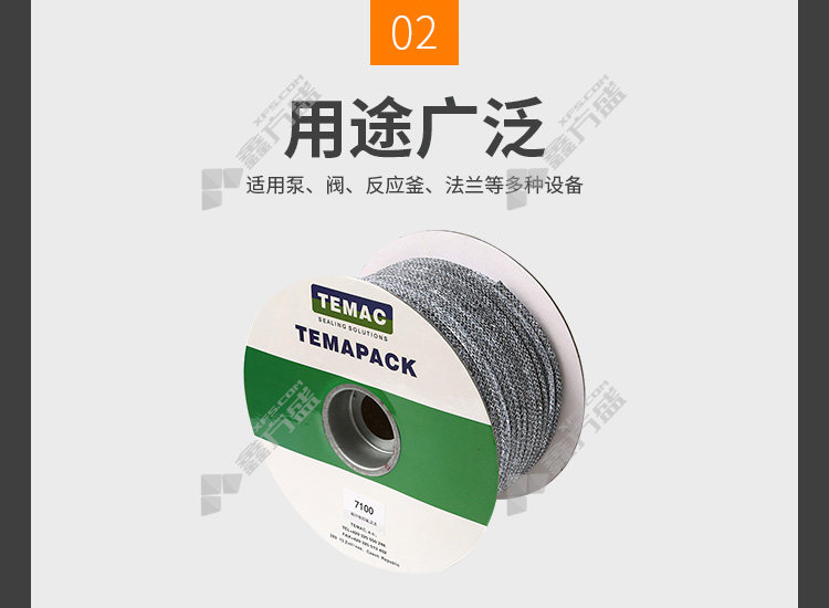 商品名称: 太美/TEMAC 碳纤维盘根7100 5kg 四氟浸渍 7100,20*20mm 5KG/卷