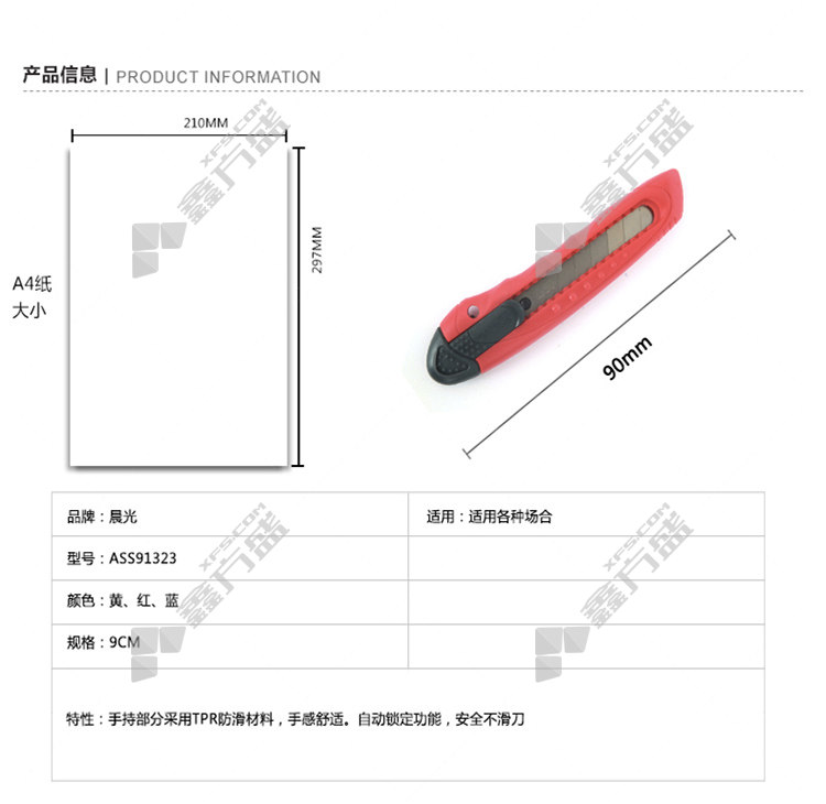 商品名称: 晨光 M&G 小号推锁美工刀 ASS91323 9mm*13刀头 颜色随机