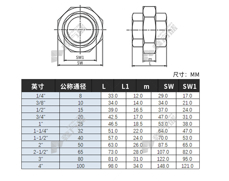 商品名称: 锐阁 304不锈钢内牙平面活接 DN20 3/4寸 BSPT ZG