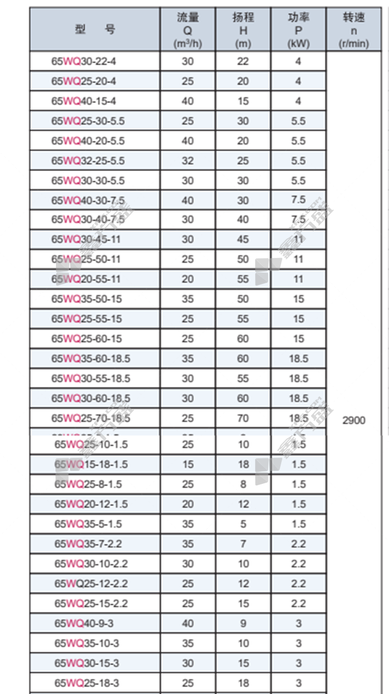 商品规格:65WQ40-20-5.5//