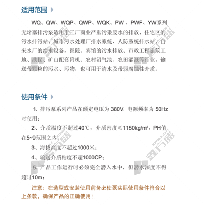 商品名称: 喜之泉 潜水排污泵65WQ系列 65WQ40-20-5.5 /