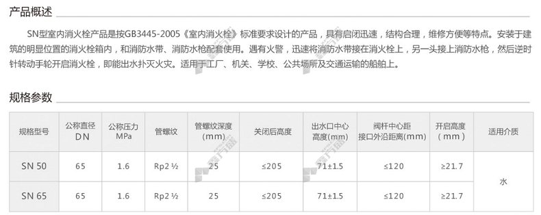 商品名称: 三辉 室内消火栓(大号) 1.6Mpa SN65