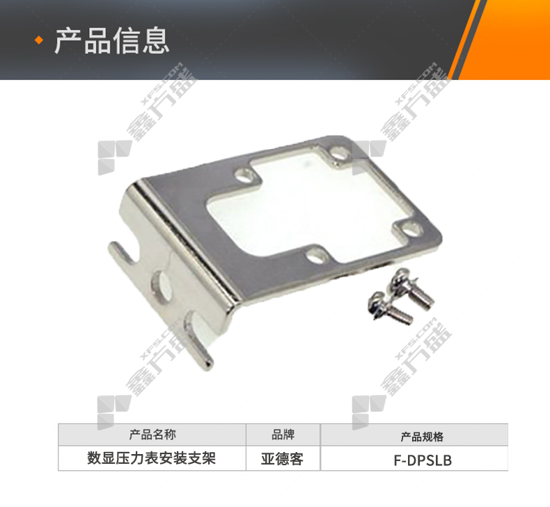 商品名称: 亚德客/AIRTAC 数显压力表安装支架 F-DPSLB
