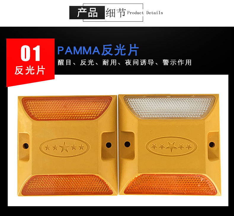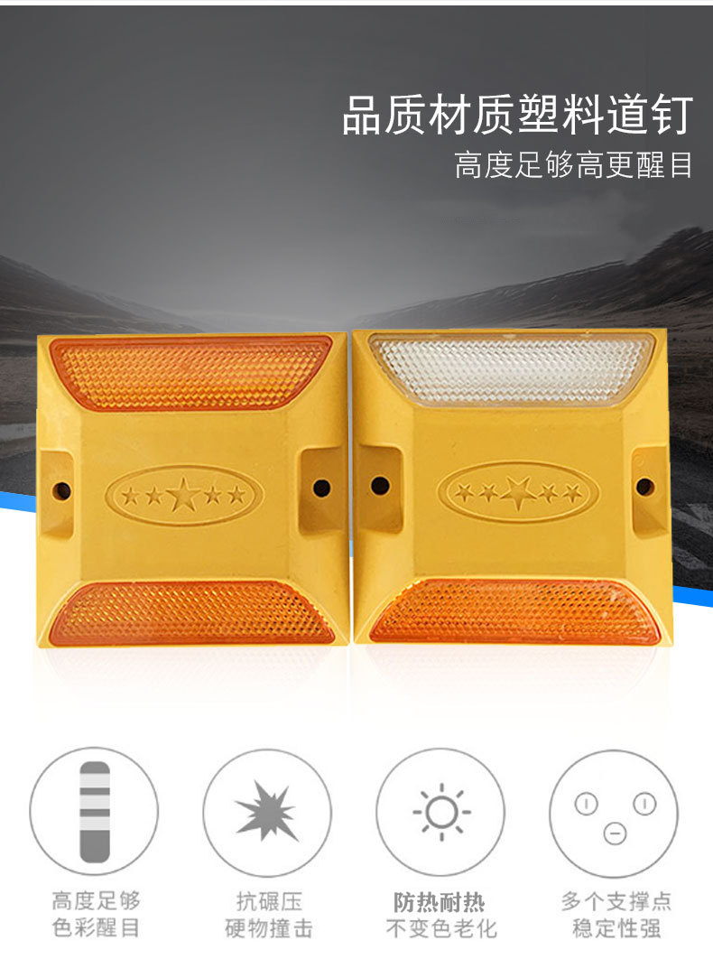 首页 首页 > 黄色仿3M塑料道钉 101*89*19mm 双面普亮黄黄反光片