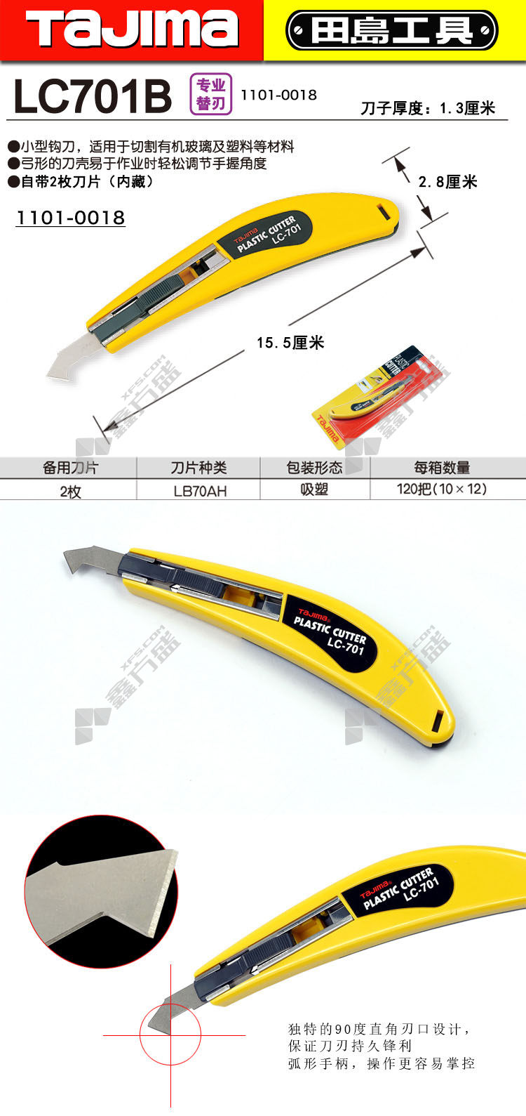 商品名称: 田岛 钩刀 LC701B/1101-0018L 黄色 150mm