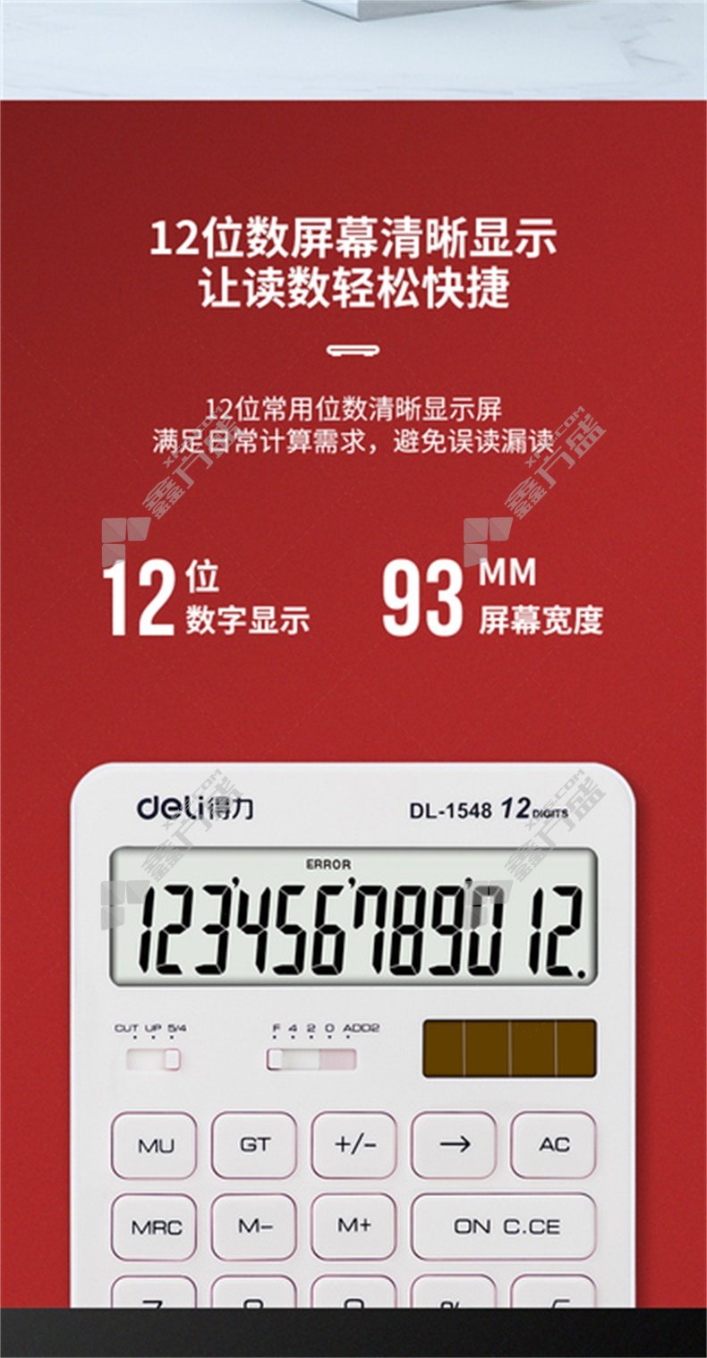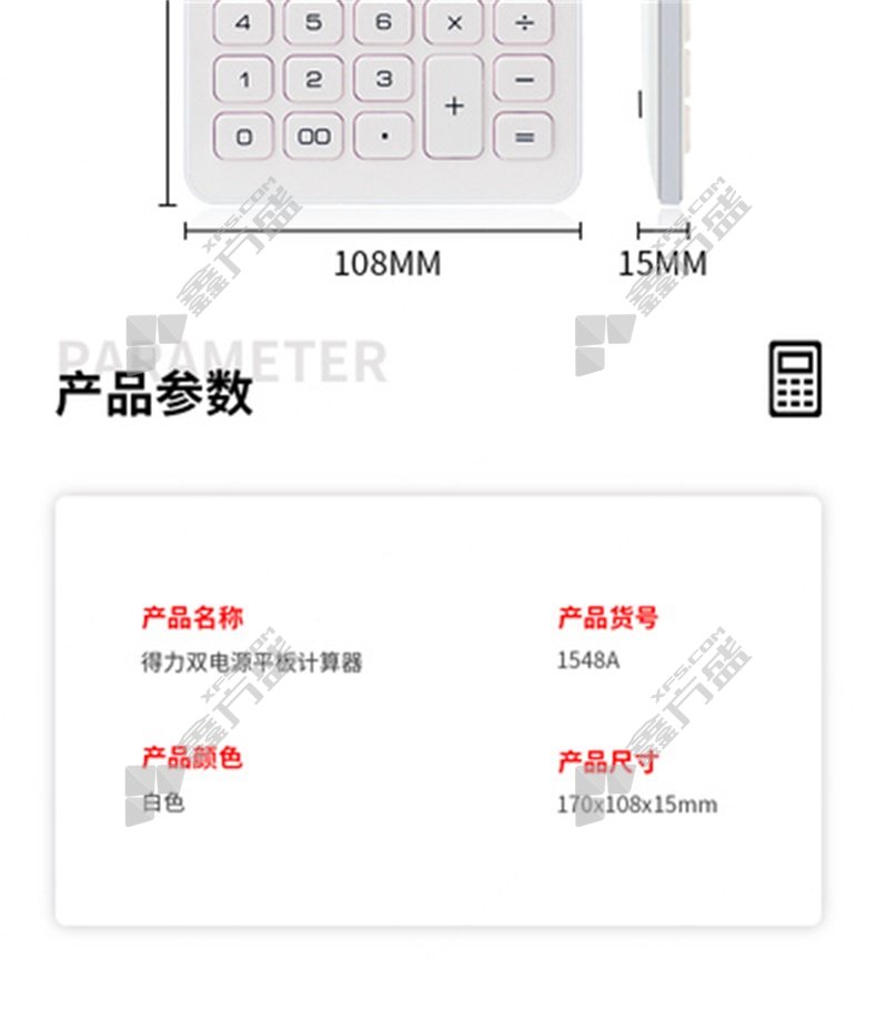 • 得力 1548A 计算器 12位 不支持语音功能 白色