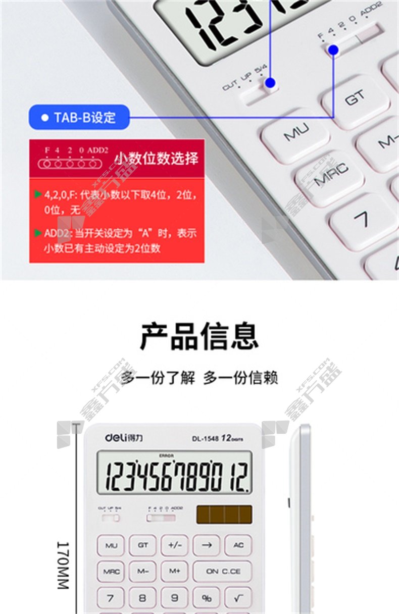 商品名称: 得力 1548A 计算器 12位 不支持语音功能 白色