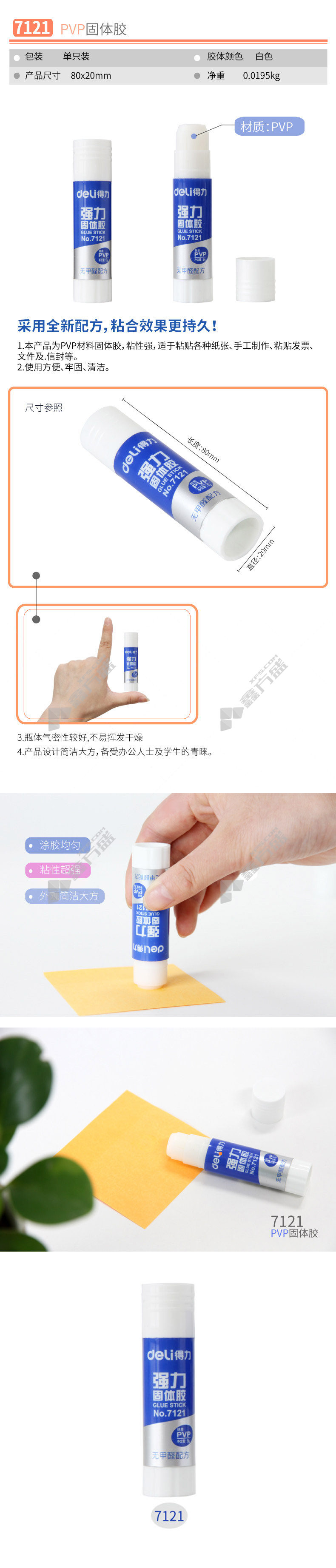 商品名称: 得力 7121 固体胶 9g 白色