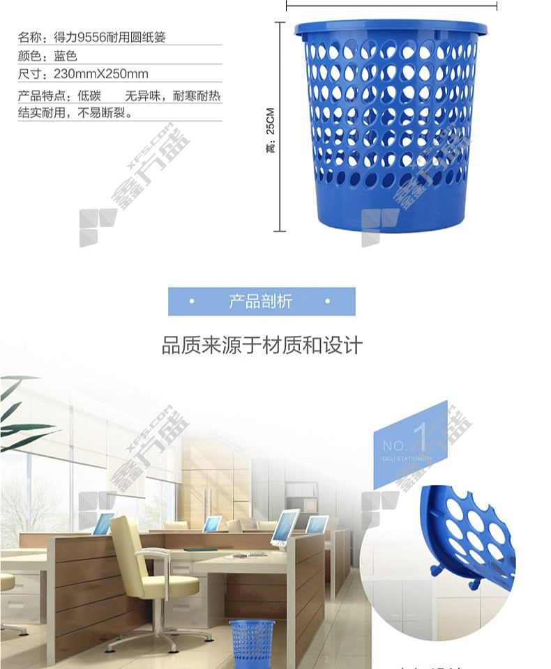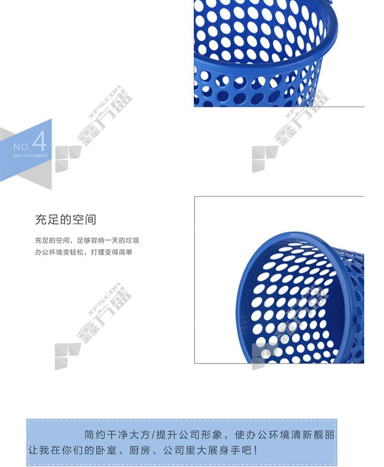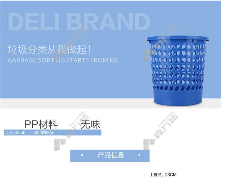 商品名称: 得力deli 耐用圆形纸篓 5L 230*250mm 蓝色 圆形