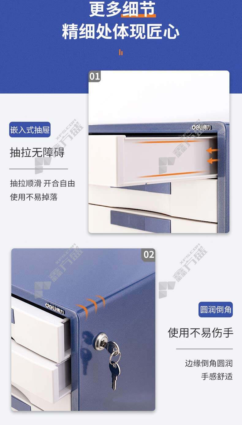 • 得力 9702 五层金属外壳文件柜 410*350*320mm 闪银蓝