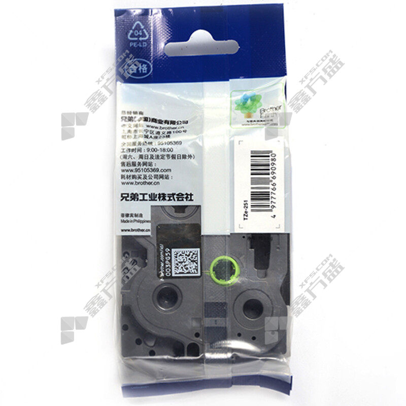 • 兄弟brother 标签机色带 TZe-FX251 白底黑字 24mm 线缆标签 白底黑字 TZe-FX251 白底黑字 24mm 线缆标签  标签色带