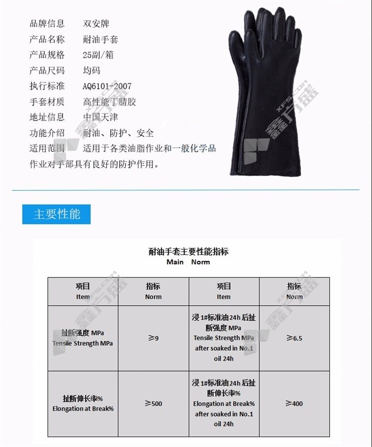 商品名称: 双安 CX002 耐油手套 39±1cm 黑色 高性能丁腈胶 002