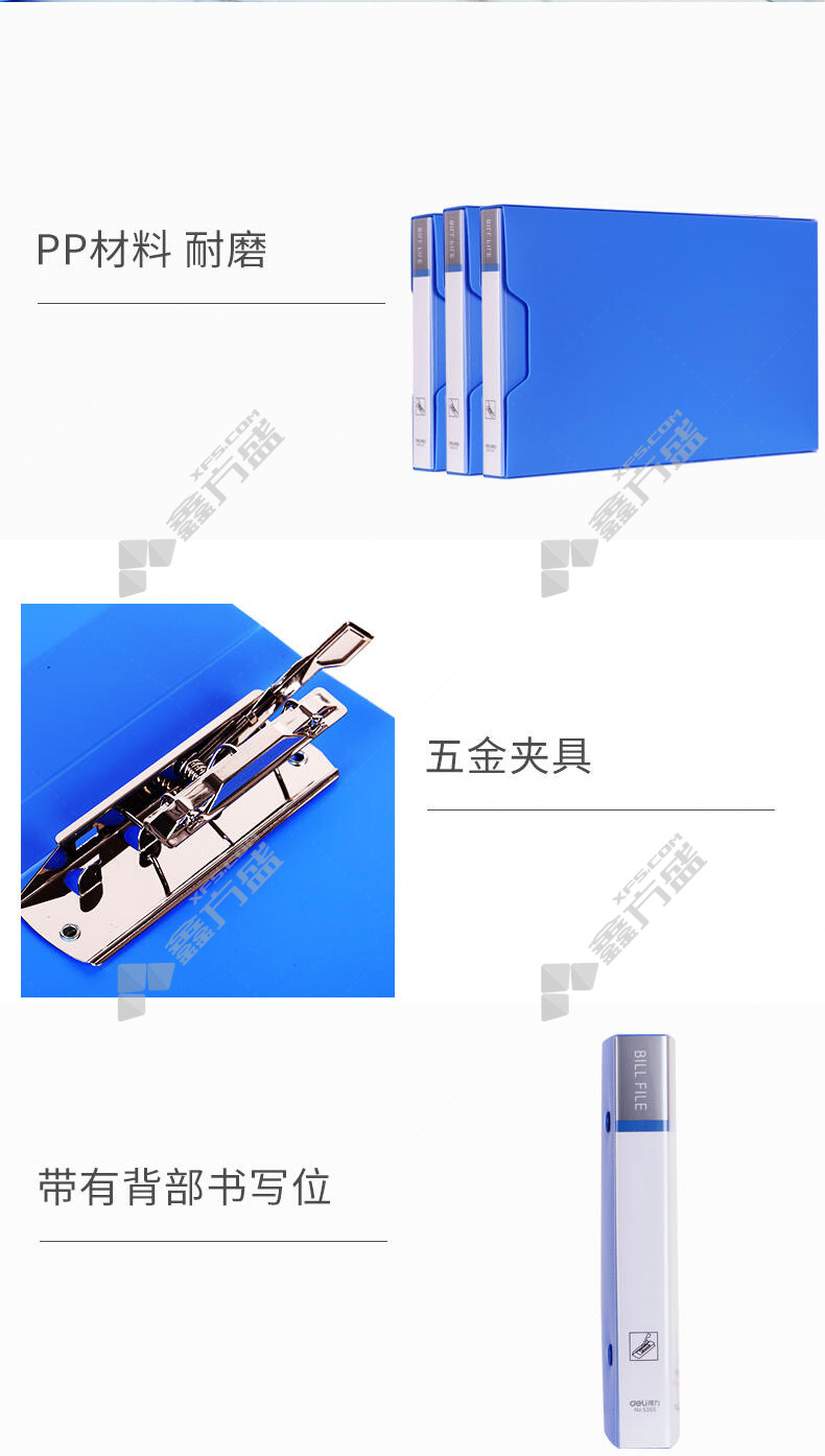 商品名称: 得力 5355 增值税票据夹 265*150*18mm 蓝色