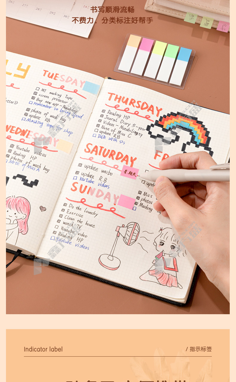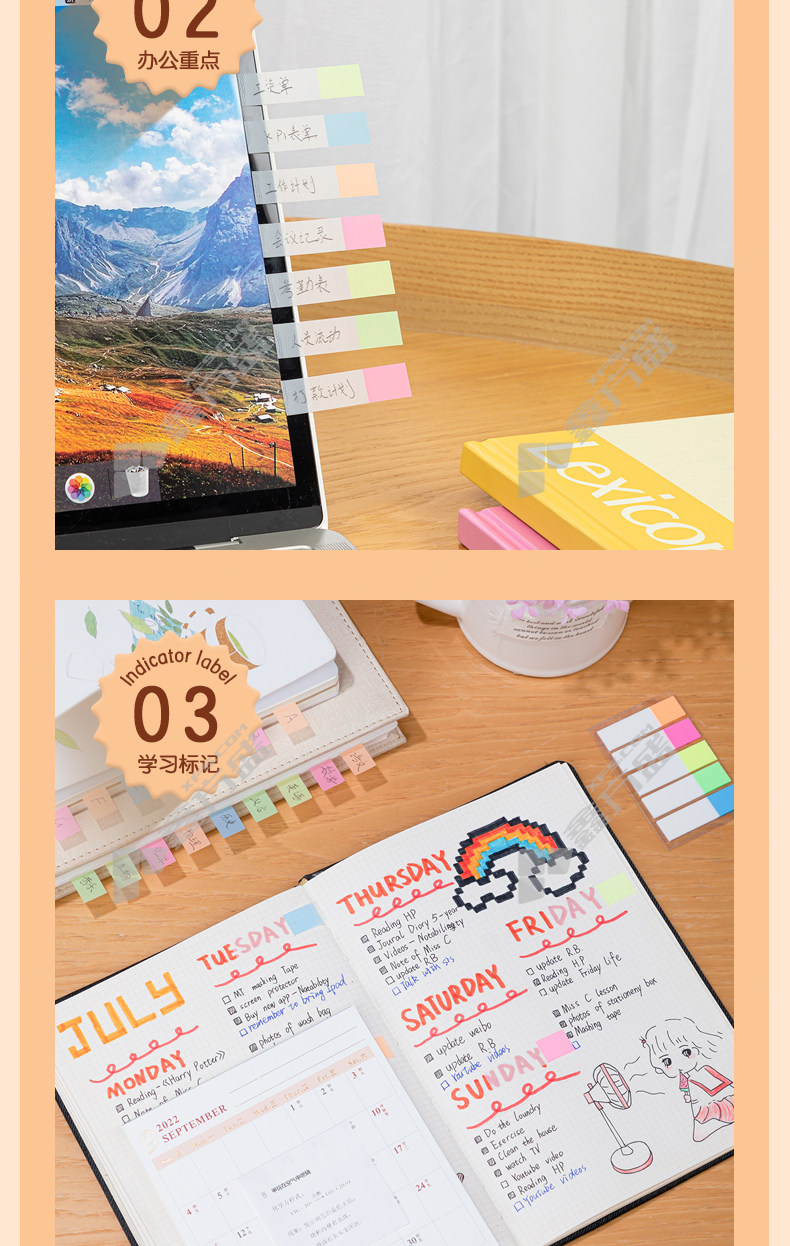 商品规格:44*12mm/20张*5条/黄色 蓝色 粉色 绿色 橙色