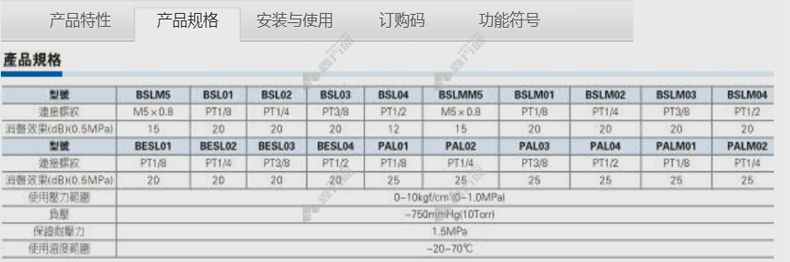 商品名称: 亚德客 通用型消音器 BSLM5S
