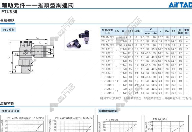 商品名称: 亚德客 MS系列推锁型调速阀 PTL401AD-MS φ4mm
