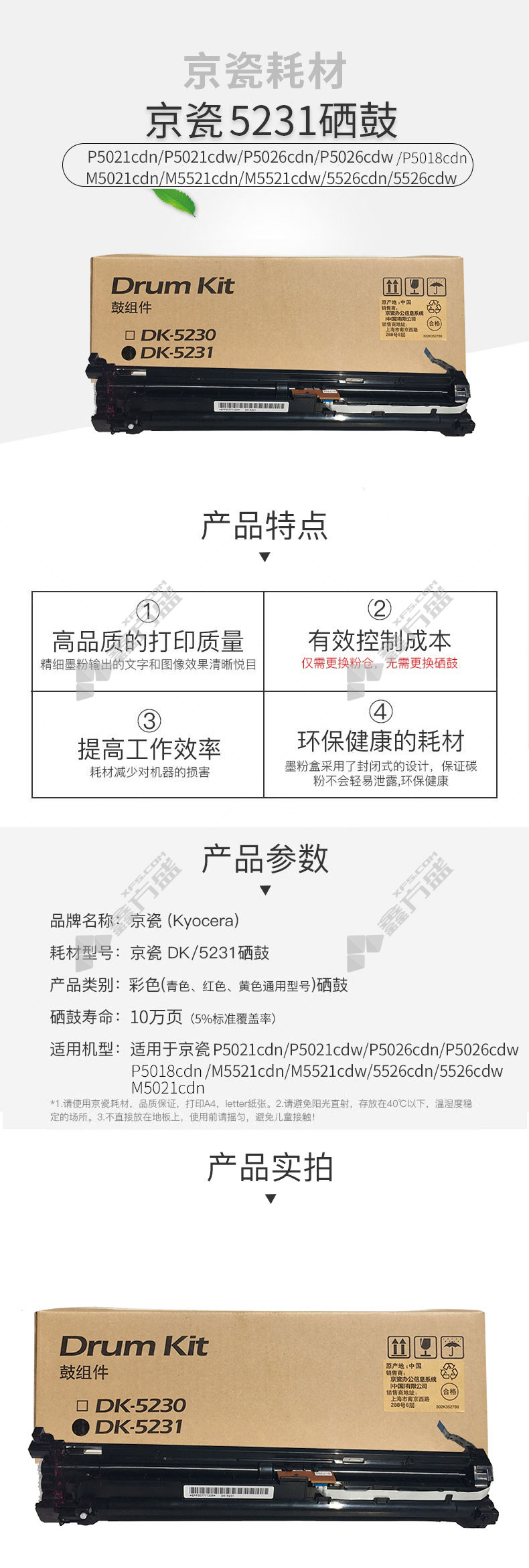 商品名称: 京瓷 硒鼓 DK-5231彩色 黑色 DK-5231彩色 常规