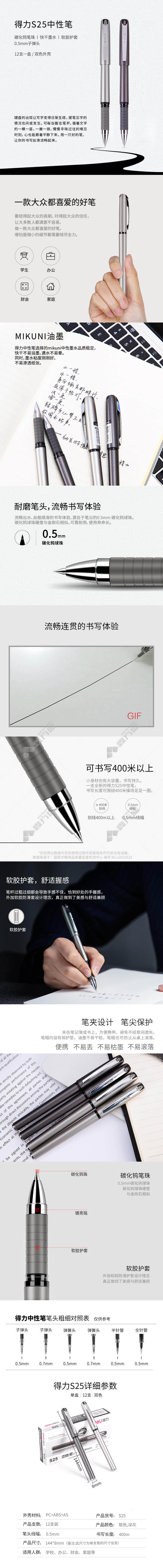 • 得力 S25 中性笔 黑色 0.5mm S25