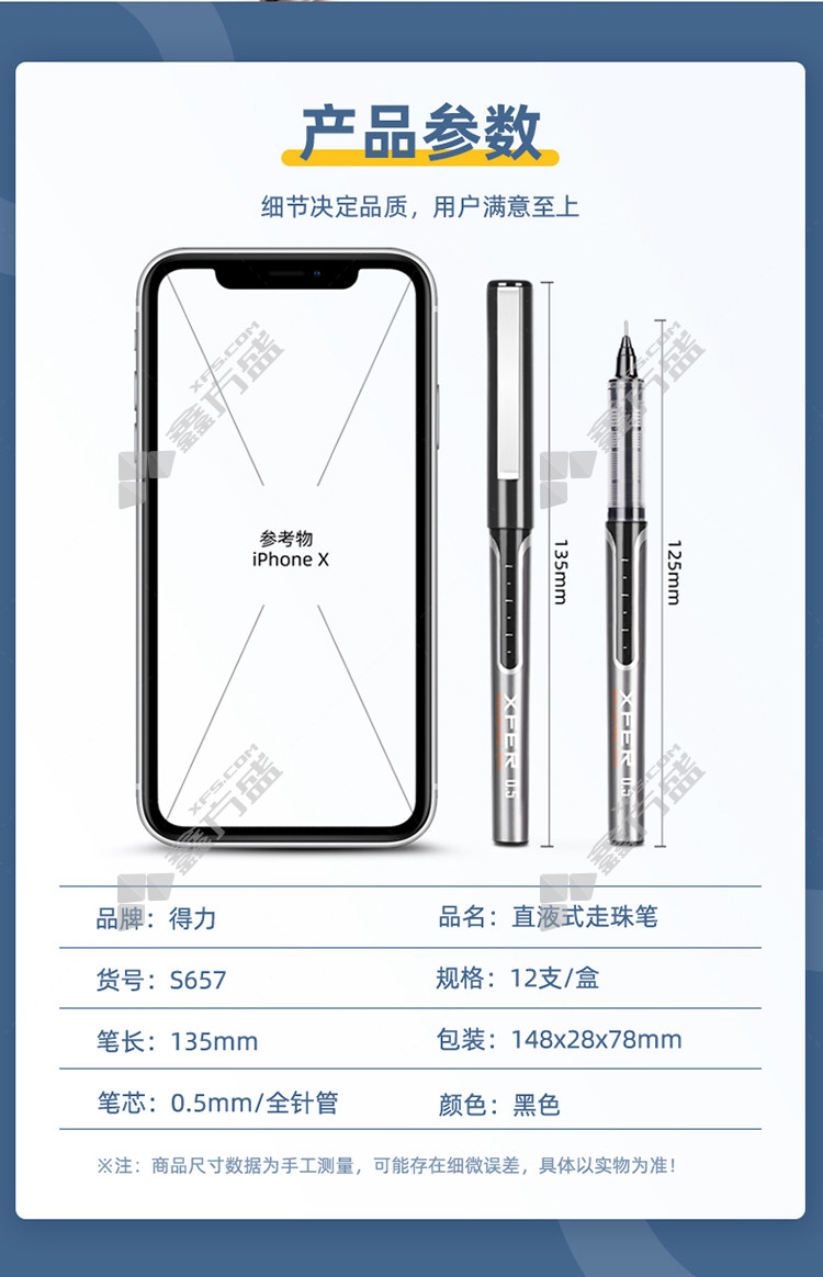 商品名称: 得力 直液式走珠笔 黑色 0.5mm S657