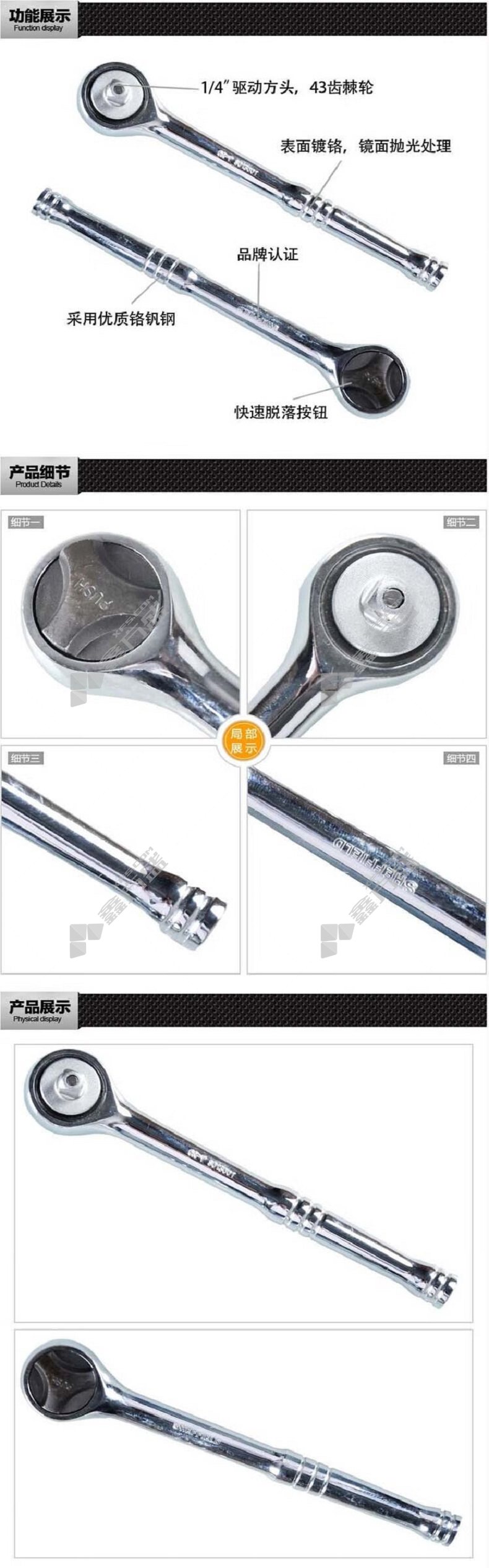 棘轮扳手表面处理:表面镀铬,镜面抛光处理