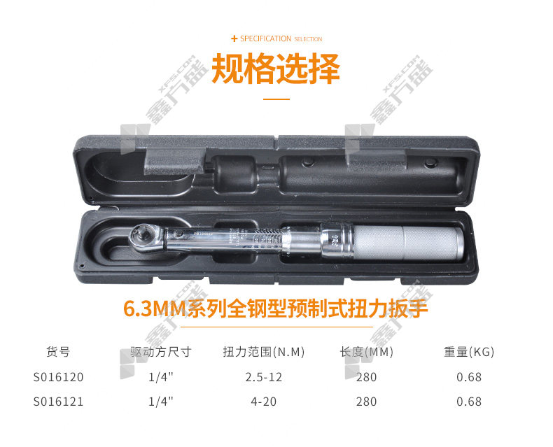 包装清单:全钢型预制式专业级扭力扳手6.3mm系列*1把