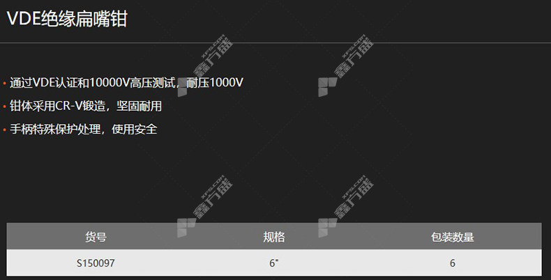 包装清单:6寸VDE绝缘扁嘴钳*1把