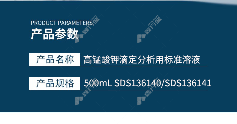 商品名称: 山冶 高锰酸钾滴定分析用标准溶液 500mL SDS136140