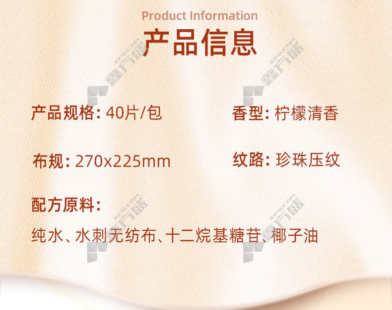湿纸巾材质:纯水、水刺无纺布、十二烷基糖苷、椰子油