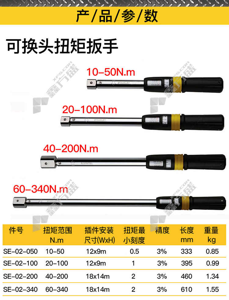 商品名称: 史丹利 Stanley 可换头扭矩扳手 60-340N.m SE-02-340