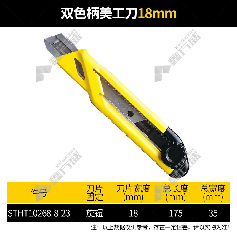 商品名称: 史丹利 旋钮双色柄美工刀 7节 18*100mm STHT10268-8-23