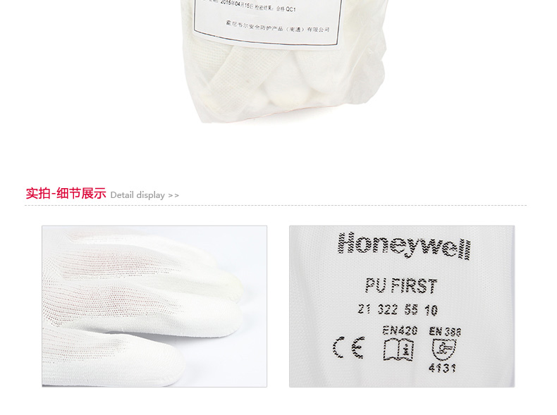 商品名称: 霍尼韦尔 尼龙PU涂层工作手套 3级耐磨1级防割 9号 白色 2132255CN