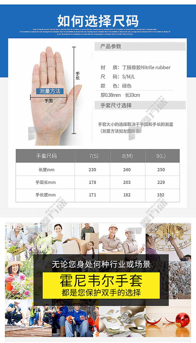 商品名称: 霍尼韦尔 无衬丁腈防护手套 LA172G 10码 蓝绿色