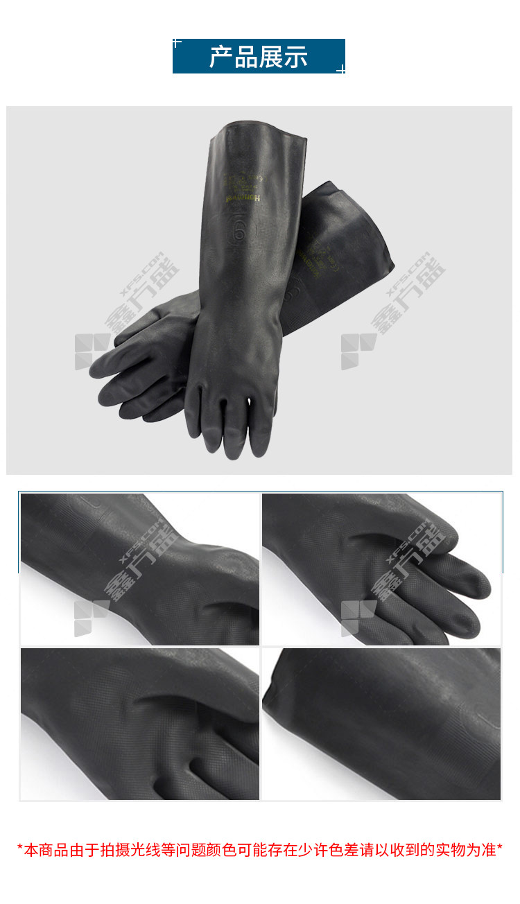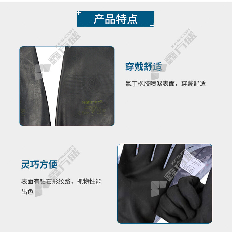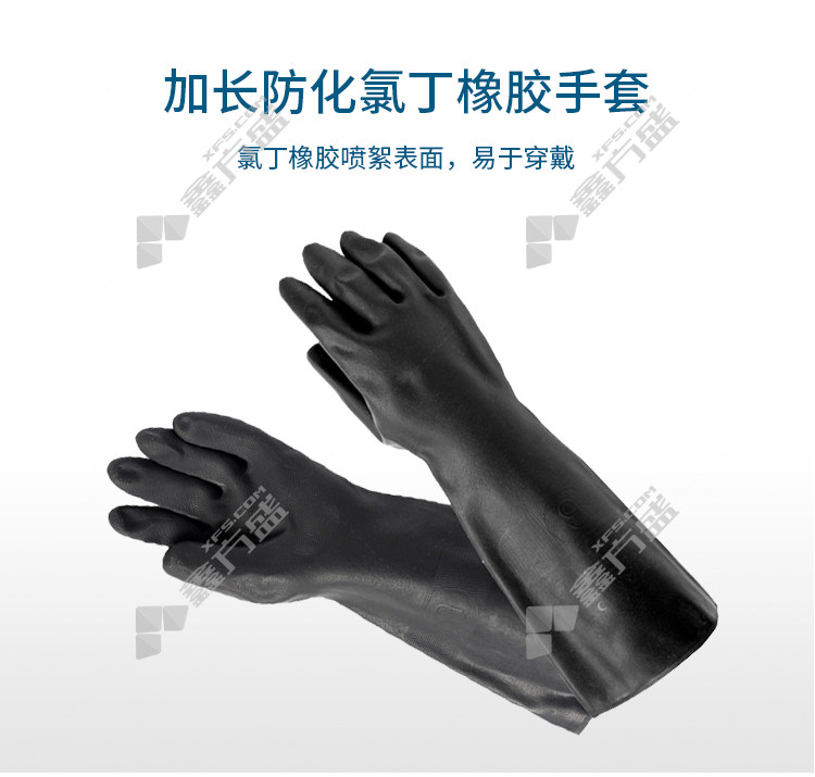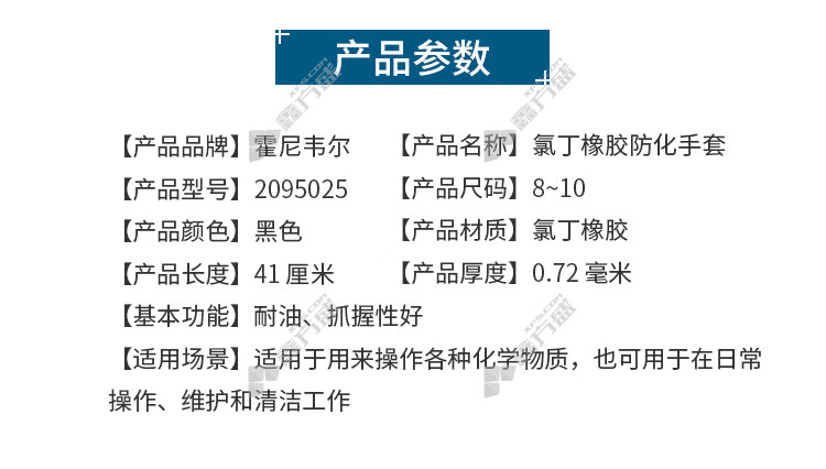 商品名称: 霍尼韦尔 2095025 加长版氯丁橡胶防化手套 9码 黑色 橡胶