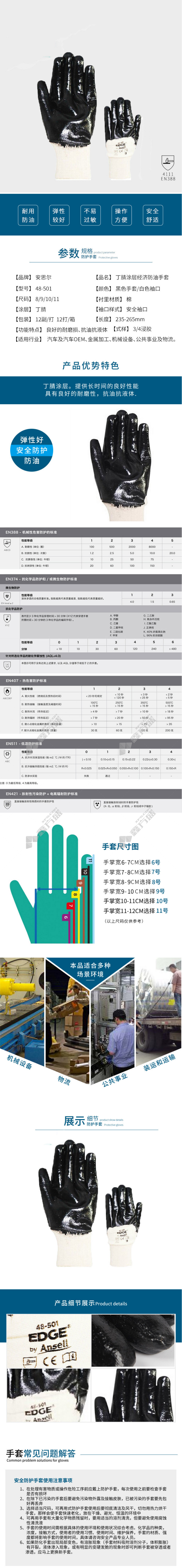 商品名称: 安思尔 丁腈橡胶涂层手套 8码 黑色 48501080