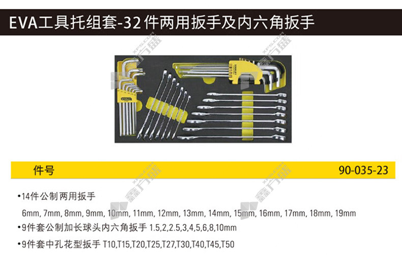 商品名称: 史丹利 Stanley 32件两用扳手及内六角扳手EVA工具托组套 6~19mm、1.5~10mm、T10~T50 32件套 90-035-23