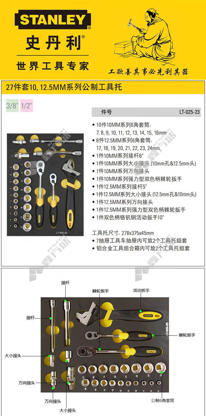 商品名称: 史丹利 Stanley 公制工具托 43件 LT-021-23