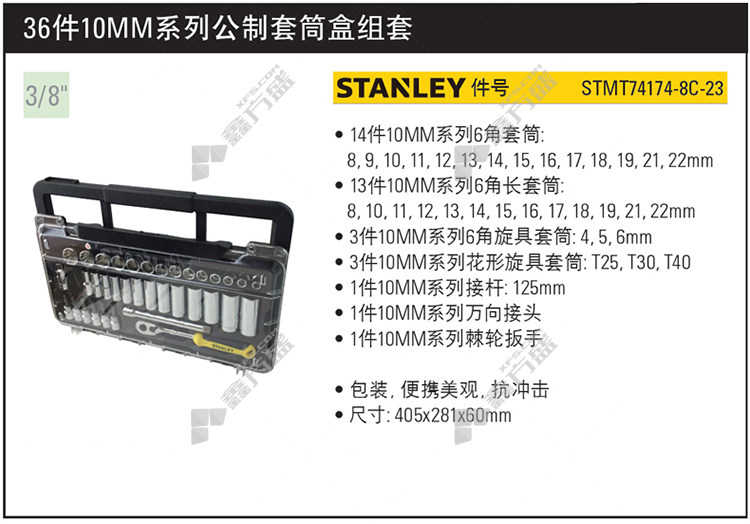 商品名称: 史丹利 公制套筒托盘组套 36件 STMT74174-8-23