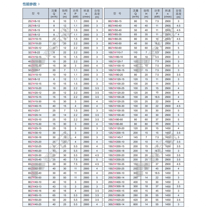 50ZW10-20-10m3/h-20m-2.2kw铸铁//