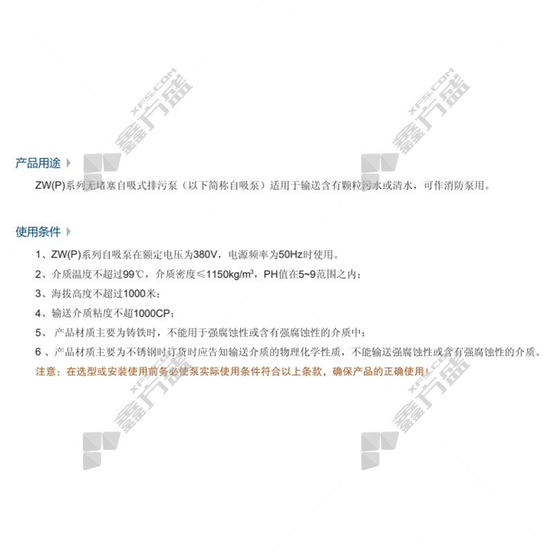商品名称: 喜之泉 ZW系列铸铁无堵塞自吸排污泵 50ZW10-20-10m3/h-20m-2.2kw铸铁 /