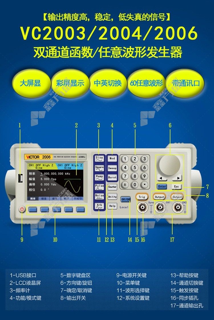 商品名称: 胜利仪器 双通道DDS函数信号发生器 VICTOR 2006