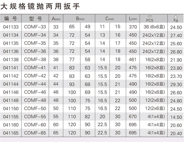 首页 首页 > 捷科 JETECH 梅花开口扳手镜面抛光 COMF-65 65mm