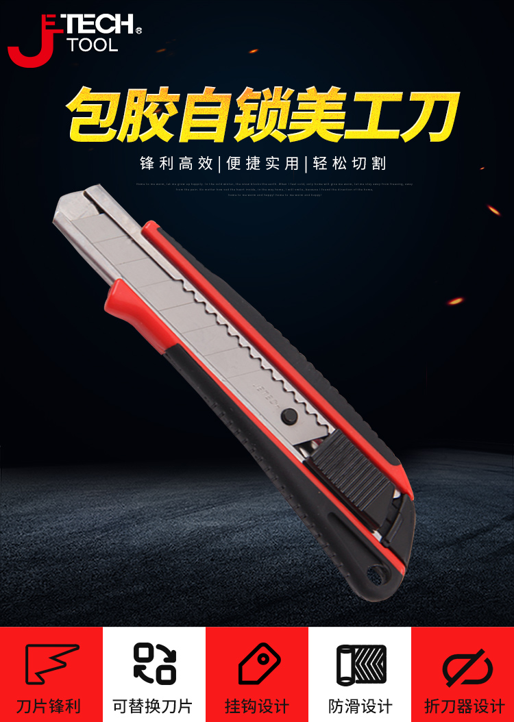 • 捷科 18mm自锁式包胶美工刀 7节 18*100mm CF-50R/130152
