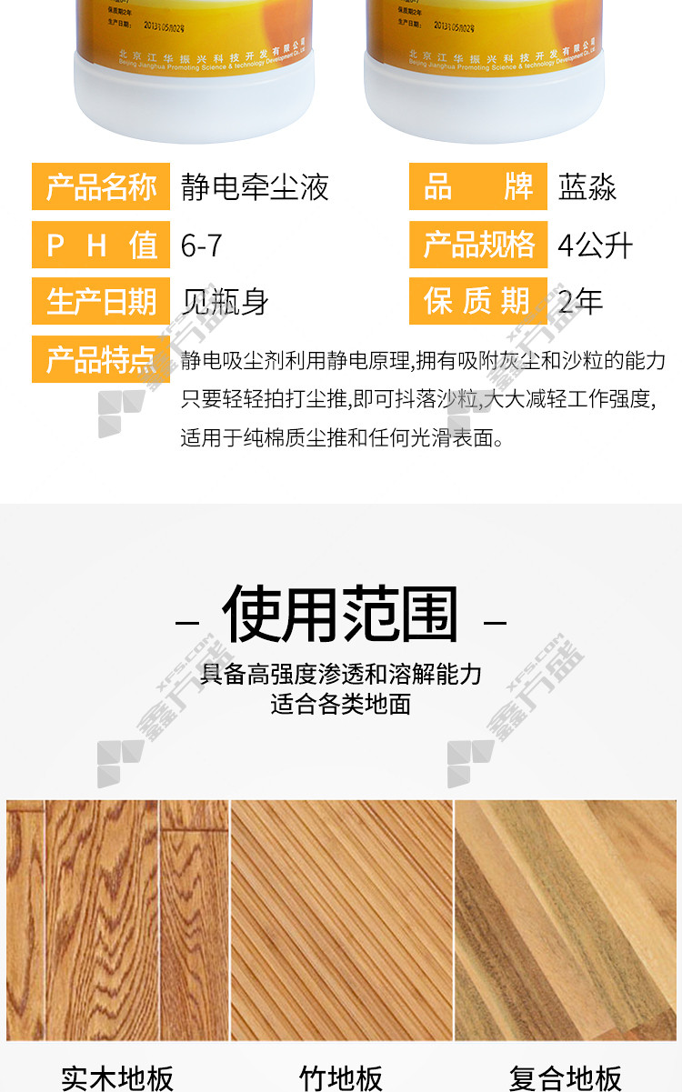 商品名称: 蓝淼 静电牵尘液 3.785L