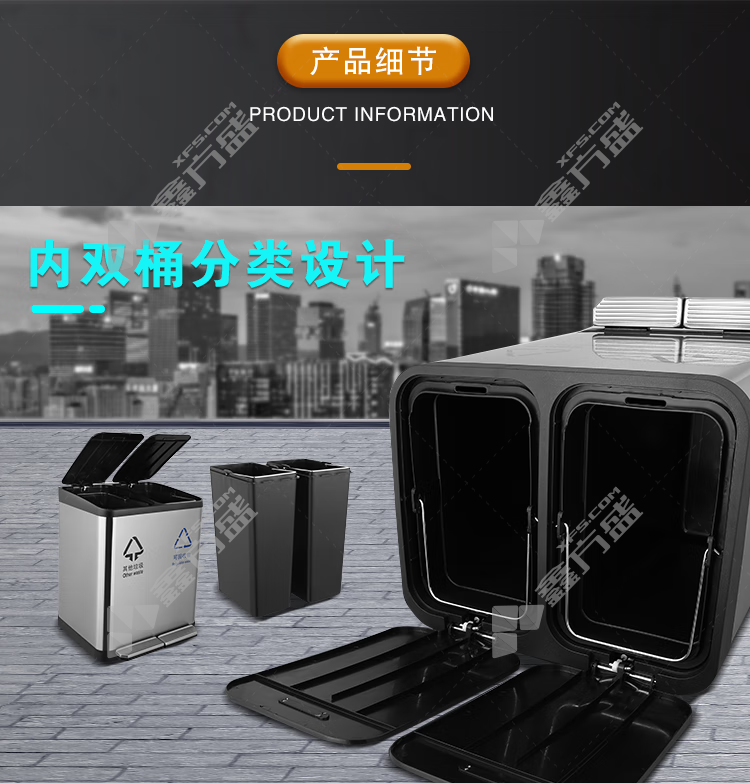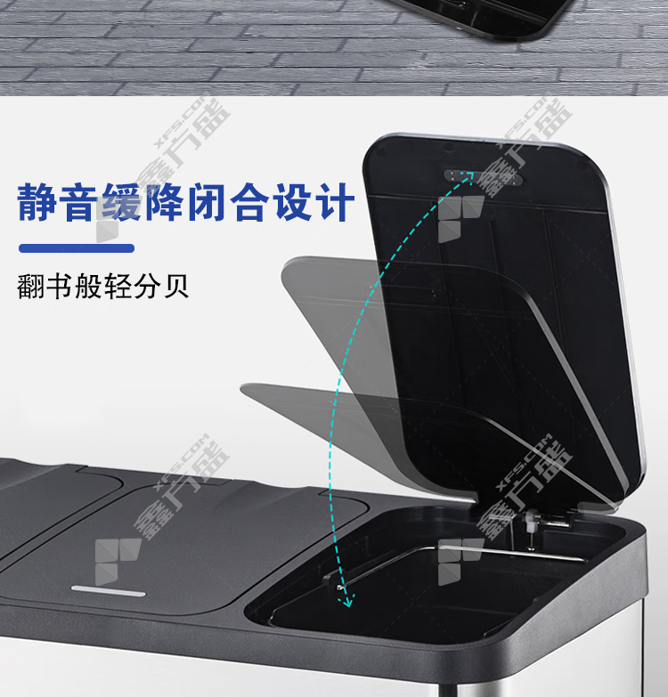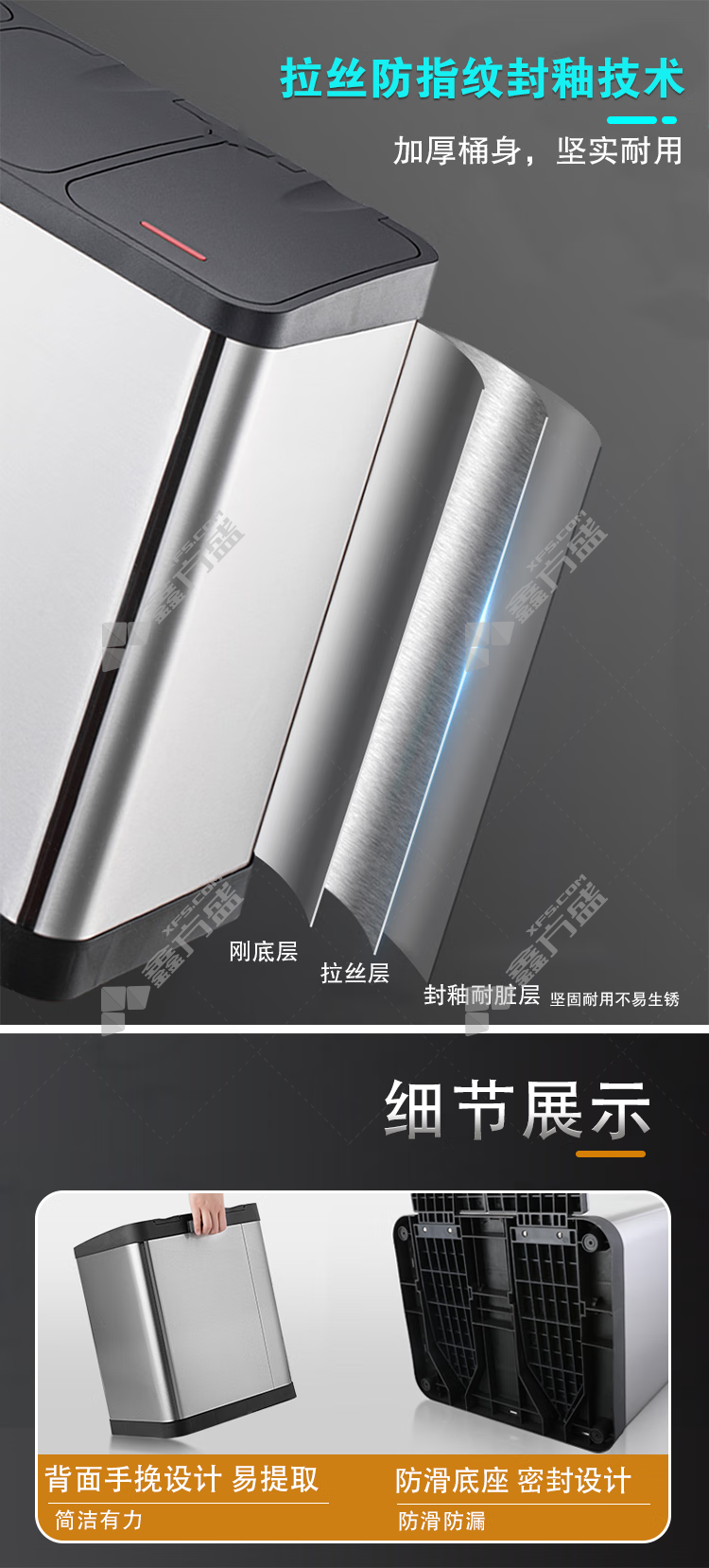 金属垃圾桶材质:410无指纹不锈钢+ABS+PP塑料