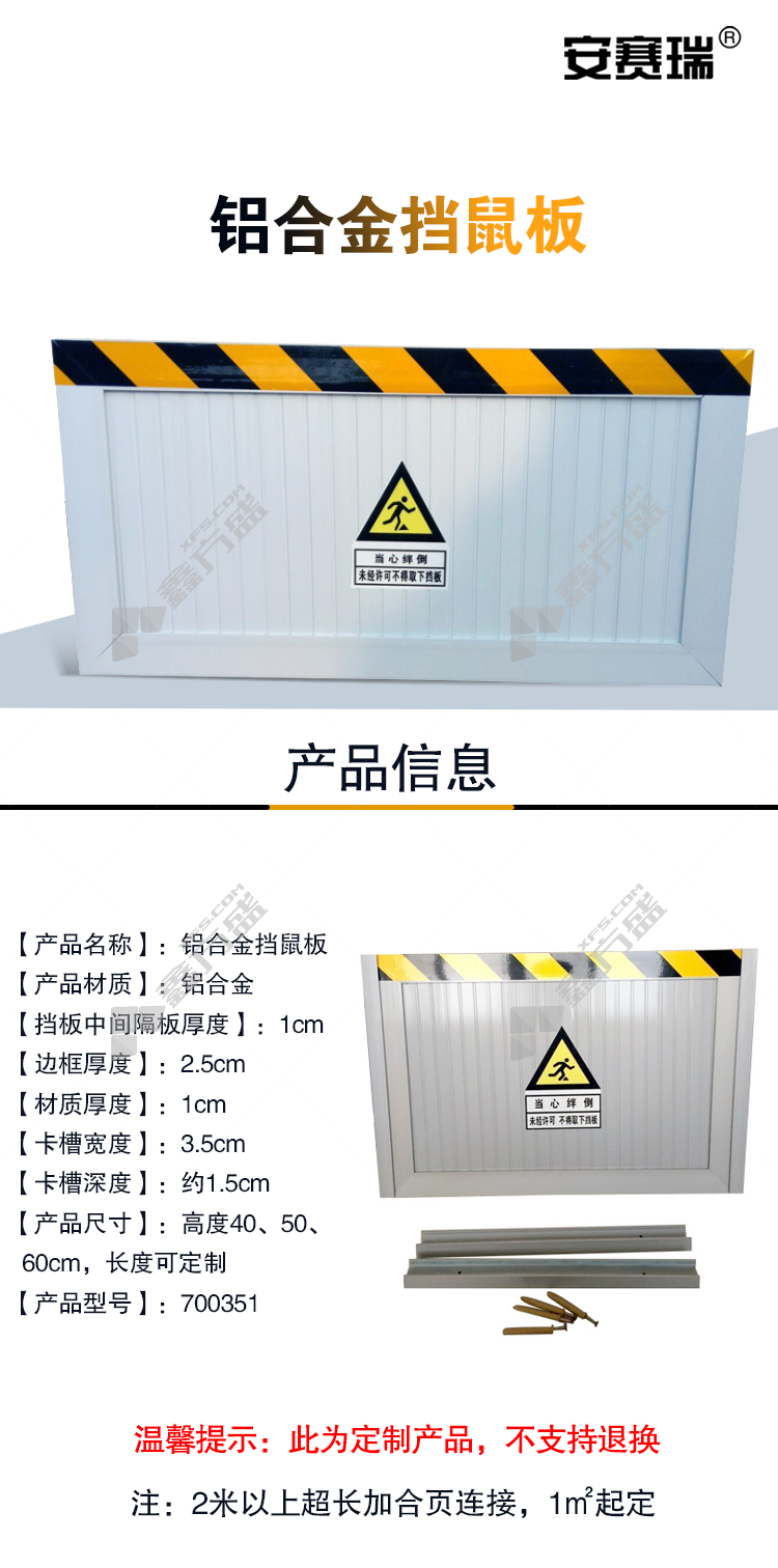 包装清单:安赛瑞 铝合金挡鼠板*1